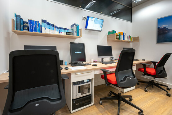 Die grosse Herausforderung bei der Walk-in-Praxis am Bahnhof in Luzern waren, dass diese sieben Tage in der Woche von sechs Uhr morgens bis elf Uhr abends geöffnet ist. Den Umbau konnten wir nur umsetzen, indem wir ein Provisorium vor der Praxis aufbauten und den Empfang und das Warten in dieses verlegten, um anschliessend in der Praxis ein Provisorium für das Labor im Warten aufbauen zu können.