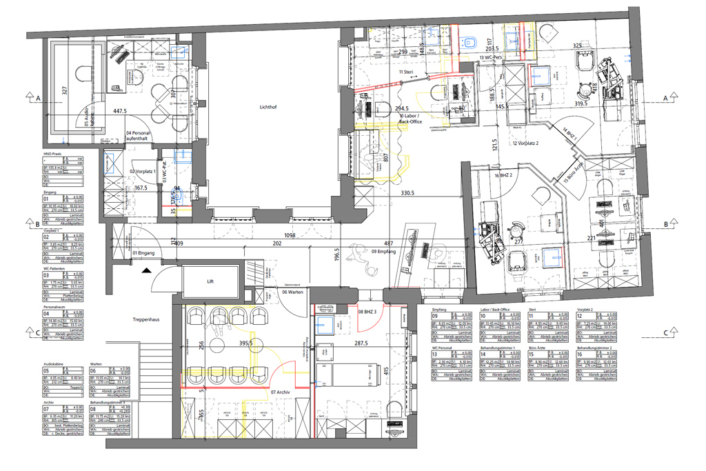Dr. Eichenberger und Dr. Blaser beauftragten uns direkt ihre HNO-Praxis neu zu gestalten. Ihre Forderung war einzig ein zusätzliches Behandlungszimmer unterzubringen.
